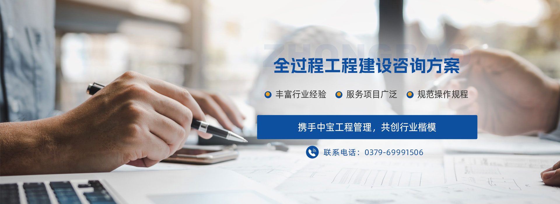 河南中寶工程管理服務有限公司是一個由十多位在工程咨詢服務及CPA行業有著多年工作經歷、豐富行業經驗、高素質人士于2009年開始籌劃運作凝聚而成的精英團隊,主要從事全過程工程咨詢、審計、工程造價、招標代理、資產評估、績效評價、可行性研究報告編制與評審、稅務咨詢與籌劃、政府和社會資本合作(PPP)項目咨詢與評審、政府專項債券全過程包裝咨詢、項目及建設項目全過程管理咨詢服務、工程設計、破產清算咨詢服務、課題及職稱服務等業務。2019年6月注冊,注冊資本為1018萬元,是集會計、審計、工程、評估、設計、招標、PPP項目、績效評價、政府專項債券、課題職稱為一體的綜合性鑒證機構及綜合性研發中心。公司注冊地址:河南省洛陽市洛龍區開元大道與關圣街交叉口怡和嘉園小區3號樓12樓1201室。是河南省全過程工程聯盟(河南省科技廳、河南省住建廳批準的全過程工程咨詢機構)常務理事單位,是洛陽技術研究院發起單位。協助洛陽技術研究院打造全過程聯盟洛陽技術研究院工程咨詢行業“六大平臺”:業務技術交流平臺、業務信息共享平臺、業務互助合作平臺、服務能力提升平臺、執業職稱促進平臺、科學技術研究平臺?! 」粳F有員工56人,全部為大學??埔陨蠈W歷,其中,本科及以上學歷占75%;中級、高級職稱人員占50%;擁有注冊執業資格證書人員占45%。公司有穩定的服務團隊和專家指導團隊,有河南省財政  廳及洛陽市財政評審專家5人,河南省財政廳績效評價入庫專家2人,河南省財政廳土地整治(理)評審專家1人,河南省財政廳高級會計師評審專家庫成員1人,河南省綜合評標專家庫專家1人,河南省審計廳外聘審計專家庫專家1人,河南省財政廳政府和社會資本合作(PPP)專家1人?! 」臼冀K注重加強內部治理。按照國家法律法規和行業規范,先后制訂了《業務質量控制及監督檢查機制》、《業務質量責任追究與賠償機制》、《采購代理業務內部監督管理辦法》、《項目管理責任制》、《重大風險事項報告制度》、《緊急預案和糾偏方案》、《保密工作條例》、《檔案管理制度》、《員工行為規范》等近20項規章制度,以樹立企業理念,規范操作規程,嚴格質量把控,強化責任擔當。  公司實行信息化管理。辦公設備自動化程度高、設備齊全;建立了信息管理系統、資料管理系統、質量管理系統,能夠全方面、快捷、準確的完成各種項目管理及相關咨詢業務,促使各工作流程、組織措施、技術措施、管理措施等相互促進,協調發展,極大地提高了工作效率,為業主項目的順利進展提供了可靠保障。